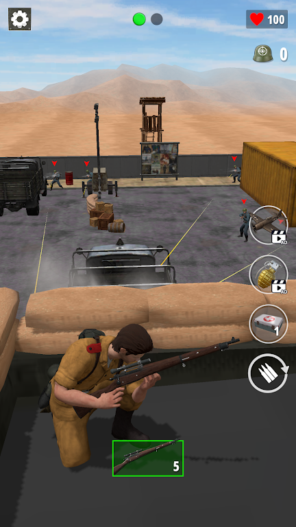 《前线勇者:二战烽火》提供了多种不同类型的任务,让玩家在战斗中体验不同的策略与挑战。你可以参与秘密狙击行动,伺机而动,打击敌军的重要目标;也可以在敌人的基地开展突袭,打击敌军士气;此外,你还需要面对坦克和步兵的猛烈攻击,展开防守战斗,保护自己和战友的安全。每一个任务都将考验你的智慧和勇气。