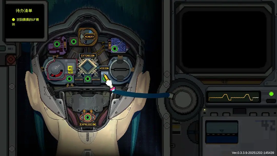 “情绪”在这个虚构的世界里并非简单的抽象概念,它们以电流形式流动于机器的模块中。玩家能通过黑客技术“骇入”这些情感,进行播放和分析,了解它们的内心世界。然而,这也带来了道德的选择。你可以选择温柔地治愈他们的“机械灵魂”,或者通过篡改和剪辑对它们进行操控,无论哪条道路,最终都将影响患者的命运。这样的选择不仅深化了游戏的深度,也让每个角色的生命历程沿着不同的轨迹展开。