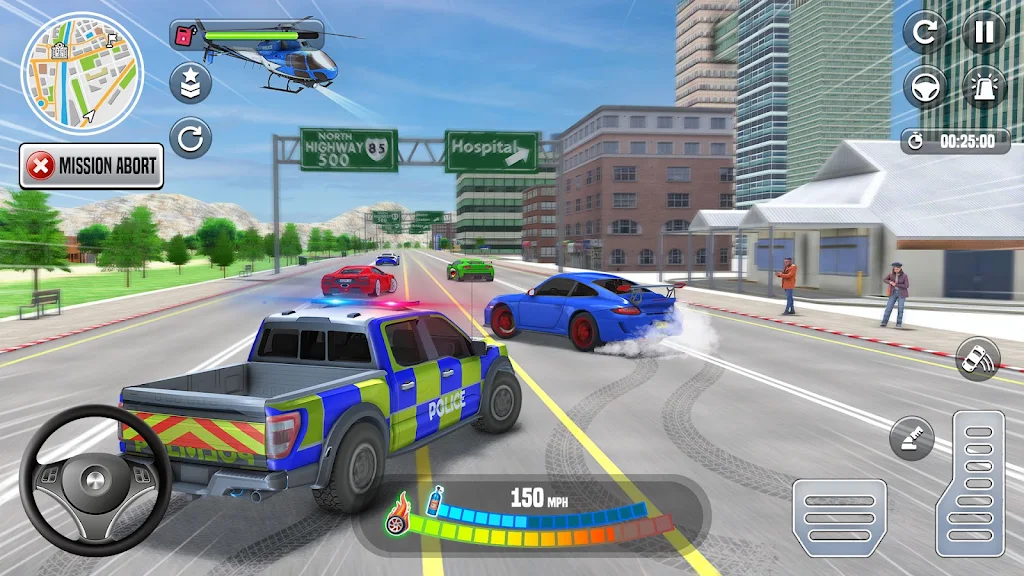 在这款3D警车驾驶游戏中,玩家能够驾驶多种警用车辆,包括警车、摩托车、甚至是直升机。每种车辆都有其独特的操作特点和应用场景。通过驾驶不同类型的车辆,玩家将体验到警务工作的多样性。在追逐匪帮和解决犯罪事件的过程中,驾驶时的灵活应变将是你成功的关键。