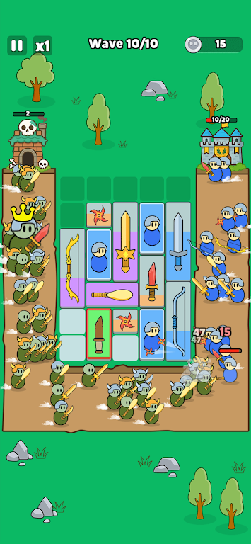 《战争袋》中,玩家将接触到多种不同的兵种,每种兵种都有其独特的能力与特性。通过将多种武器连接到同一个单位,玩家能够形成更加强大和灵活的战士。例如,将步兵与火球相结合,或是让骑兵搭载强力的回旋镖,都是极具策略性的选择。玩家需要不断探索最优组合,从而在战斗中获得胜利。