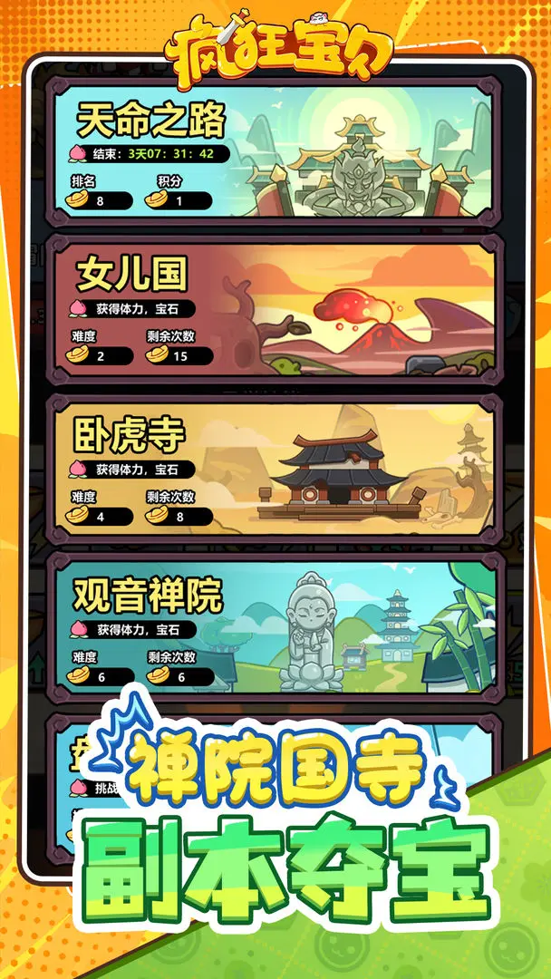 在这个充满变数的世界里,你并不孤单。《疯狂宝贝(测试)》中经典的西游角色将以颠覆的姿态登场,成为你西行路上的强大盟友。无论是“哪吒”驾着风火轮,来到天际注入火焰的力量,还是“八戒”手持钉耙,能撼动大地的勇士形象,抑或是“白龙”衔珠,以海潮之力引导潮水奔腾,他们都将为你的旅途增添强劲的助力。每一个角色都拥有独特的技能和战斗风格,结合你的策略,将使你在冒险中如虎添翼。