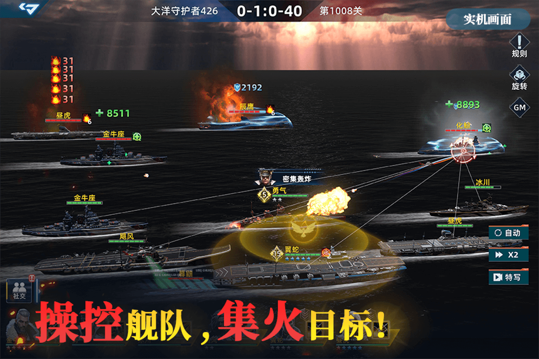 《大洋守护者(测试)》的海战环节独具魅力,采用即时策略与手动集火机制相结合。玩家可以随时切换目标,快速针对敌方舰船的关键位置进行精准打击。这种灵活的战术安排让您在纷繁复杂的海战中,能够运用智慧与策略,最终掌控战局。通过观察敌舰的运动轨迹和战术配合,您可以选择最佳时机发起攻击,借助手动集火机制,集中火力一举摧毁敌方主力。