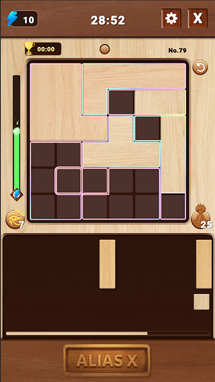 在游戏的解谜模式中,玩家将面对独特的棋盘和不同形状的木块。每个关卡设计都可能有多种解法,鼓励玩家在解决谜题时进行创造性思考。你可以尝试不同的组合和布局,寻找最符合自己风格的解法,这种自由度使得每次体验都新鲜有趣。