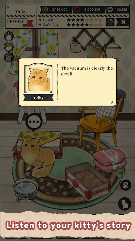 在这个游戏中,你将有机会通过店铺购买各种家具,来装饰猫咪的房间。通过合理的搭配与布置,你可以创造出一个舒适而又美丽的居住环境,满足猫咪们的生活需求。你会发现,猫咪们会对房间里的新家具产生兴趣,它们可以在此独自休息或做日常的梳理。当你与猫咪的亲密度上升时,还能解锁专用的猫咪家具,进一步提升它们的居住体验。