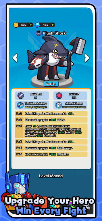欢迎来到玩具对决,一个充满奇幻色彩的全新战斗世界。在这里,经典的童年玩具将跳出童话般的盒子,化身为强大的战斗伙伴。无论是你儿时最钟爱的小汽车,还是那精致的洋娃娃,它们在这一场桌面战争中都将焕发出新的活力。玩具对决为玩家提供了一个独特的策略性舞台,让你在收集、融合和升级中感受到无与伦比的乐趣。