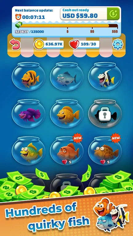 在钓鱼狂热中,玩家可以探索数十种独特的鱼类,每一种鱼都有着独特的风格与创意设计。无论是色彩斑斓的小丑鱼,还是沉稳霸气的鲨鱼,每一条鱼都是一件精美的艺术品。捕获这些不同类型的鱼类不仅能丰富游戏体验,还能为玩家的收集过程增添乐趣。