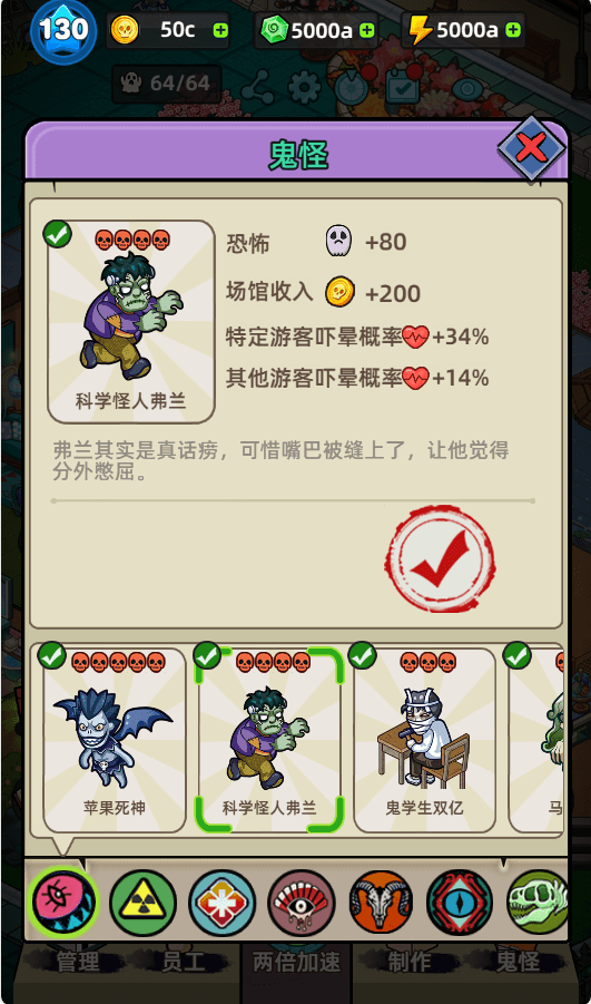 这不仅仅是一场吓人盛宴。你需要规划乐园的布局,将中式冥婚主题的静谧院落与墨西哥亡灵节风格的喧闹广场合理区隔;需要制定票价,设计巡游路线,甚至为胆小的客人开设“安全灯”服务。在维持日常运营的同时,还要应对突如其来的挑战,比如某个过于调皮的小鬼灵擅自修改了剧本,或是古老诅咒带来的异常天气。如何在惊吓指数与游客满意度之间找到绝妙的平衡,将时刻考验你的智慧。
