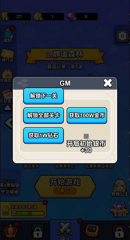 1、主页-设置-5次点击“设置”文字弹出GM菜单