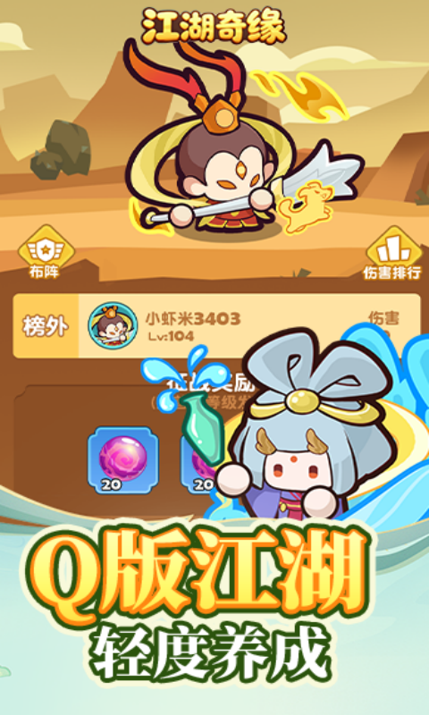 《江湖奇缘》轻松治愈的仙侠门派养成手游 在《江湖奇缘》中,你将扮演一派掌门,投身于一个轻松治愈的仙侠世界。游戏采用清新明亮的Q版画风,让你在经营门派、建设各类设施的过程中,感受门派壮大的成就感。 江湖中常有身怀天赋的少年前来拜师,作为掌门,你需要慧眼识人,根据弟子们的不同潜力因材施教。你需要统筹门派资源,修建演武场、炼丹房、藏书阁等设施,为弟子们创造良好的成长环境,从而在这片江湖中站稳脚跟,庇护门人。 本作注重轻松养成的体验,玩法轻度而不失策略。我们将持续推出各类趣味活动,致力于为每位玩家提供一个温馨而有归属感的仙侠家园。