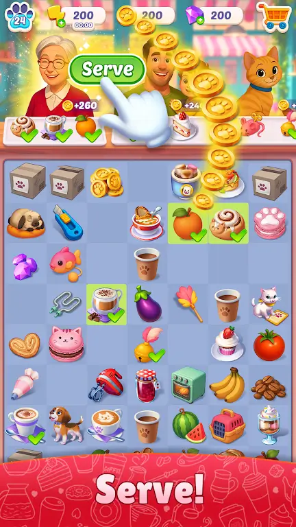 《合并宠物咖啡馆》带来了全新的合并机制,让你的游戏体验变得轻松而刺激。告别以往只可单独移动一个物品的烦恼,我们独创的批量合并方式,让你能够一次合并多个物品,体验无缝的合并乐趣。这种直观的玩法让你专注于创造和发展,而不是在繁琐的操作中消耗时间。