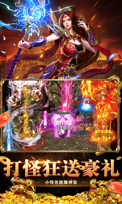 3.创角豪礼:创角即送赤月装备、幸运+9、自动范围拾取