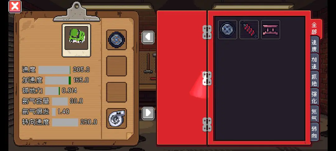 玩家在像素拉力赛(测试)中不仅能够选择不同的赛车,还可以对其进行个性化的改造与升级。通过获得游戏内的资源,玩家可以提升赛车的性能,包括引擎、悬挂系统、轮胎等,使其在比赛中表现得更加出色。此外,玩家还能改变赛车的外观,选择不同颜色和贴花,让自己的一辆赛车在赛道上独树一帜。