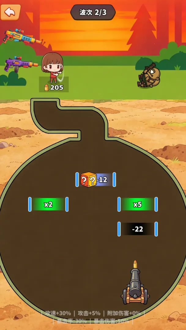 除了挖矿,挖矿大闯关还融入了策略炮台对战玩法。玩家可以在矿道周围布置多种类型的炮台,包括火炮、冰炮和雷炮等,合理搭配不同攻击特点的炮台,有效防御进攻的地下怪物。炮台不仅可以升级,还能通过策略组合发挥最大威力,守护矿洞安全不被怪物破坏。