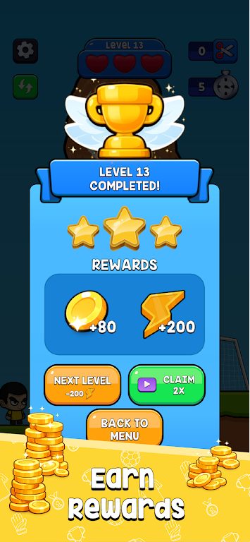 切割挑战:得分是一款融合了切割建造与物理谜题元素的创新益智游戏,带领玩家进入一个充满挑战的2D横版卷轴世界。在这里,你将扮演一名技术娴熟的街头前锋,通过运用巧妙的切割技巧,解决各种复杂的障碍,最终实现攻入制胜球的目标。游戏强调逻辑推理与时机掌控,鼓励玩家深入思考如何利用环境中的每一块物体,将破碎的碎片变成你迈向胜利的桥梁和斜坡。
