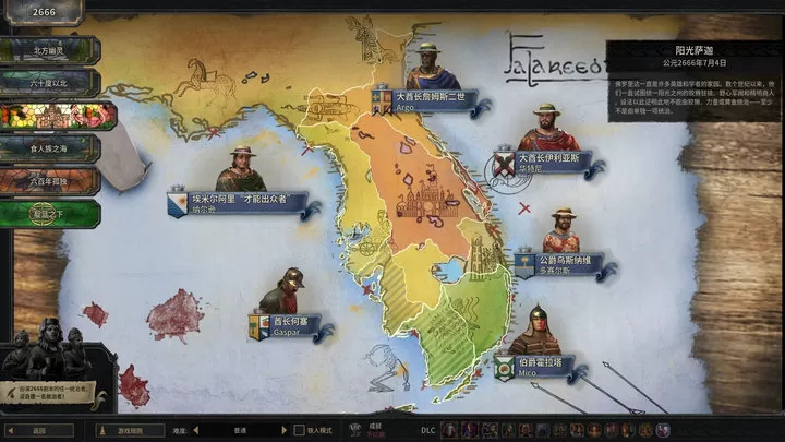 在《十字军之王3:末日之后Mod》中,玩家能够接触到多个重要势力。巴西帝国屹立于南美大陆,强大且不断努力巩固对亚马逊雨林的统治权。往北,则是墨西哥帝国的故地,那里信仰者邦——一致教徒和基督圣王教徒之间矛盾激烈。同时,神圣哥伦比亚联邦的皇帝自称为古代美洲文明的合法继承者,而美利坚教徒坚信只有他们的宗教领袖才配拥有这一身份。在西部,加利福尼亚的永生上师势力影响深远,尽管有人反对他的权威,却依旧有庞大的信徒基础。玩家可选择扮演这些大国之一,或是摸索各地勇敢的小王朝,在这动荡的时代中一展宏图。