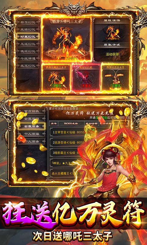 4.亿万灵符:零氪玩传奇,首杀BOSS狂送万元充值