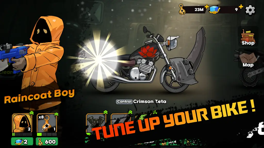 猎人们各具特色,每一名角色都有专属的速度属性、专属武器和独特的个性。选择适合自己风格的猎人,可根据关卡需求灵活切换策略。除了角色,摩托车本身也支持全面升级和个性化定制。玩家可以组合不同的零部件,打造性能卓越、造型独特的终极座驾。合理搭配武器系统和机动性能,才能在追逐与战斗中占据优势。