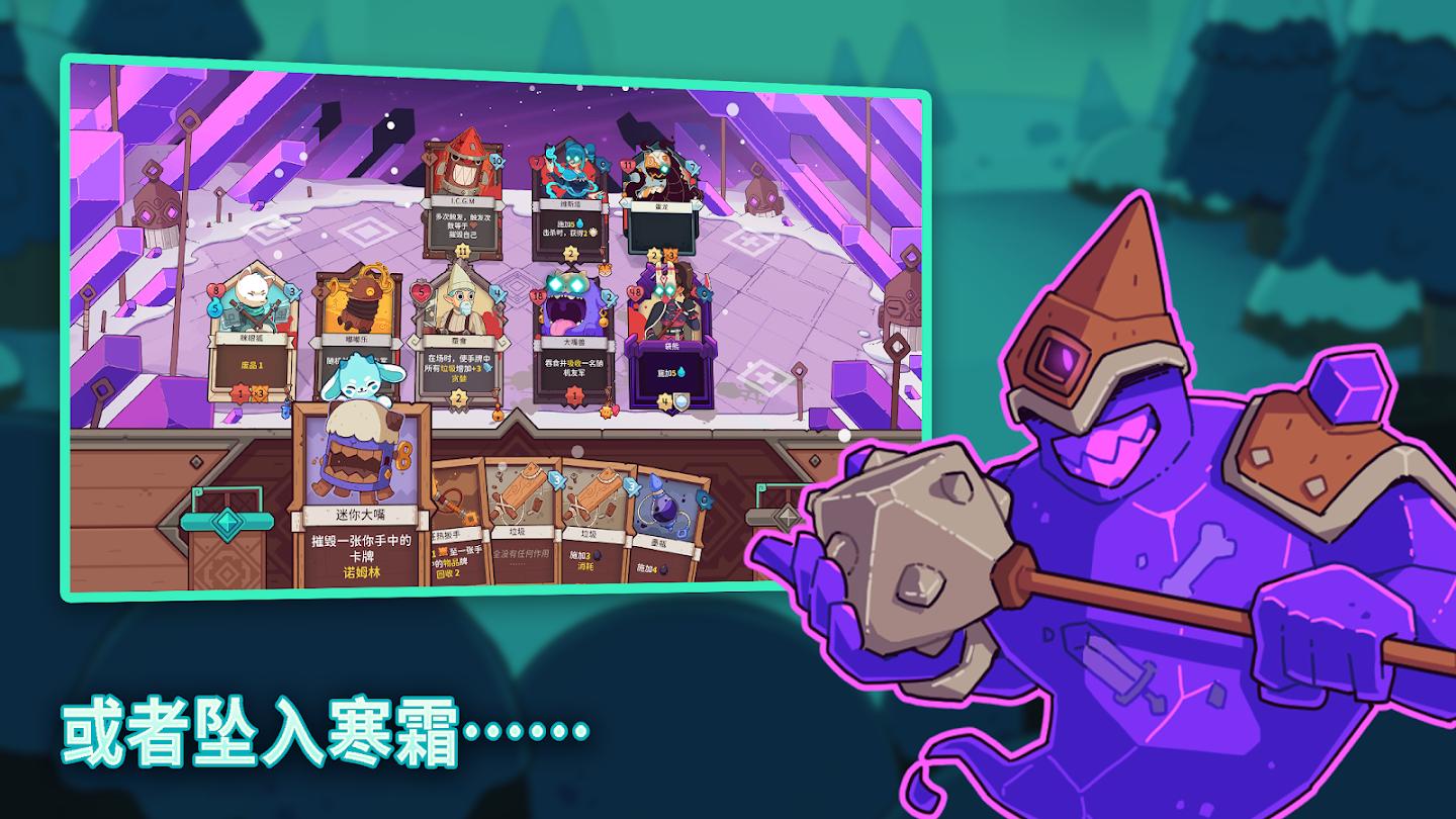 雪居之地(MOD菜单)是一款融合策略与冒险的卡牌游戏,在寒冷的狂霜环境中,玩家将扮演部落领袖,带领队伍踏上充满挑战与机遇的旅程。游戏内拥有超过165张丰富多样的卡牌,从可爱的卡牌英雄到强力的元素装备,每一张卡牌都能为你的牌组注入独特的战斗力。通过合理搭配卡牌和装备强大护符,你将在战斗中发挥出绝佳的战术策略,掌控全局,击退狂霜的威胁。