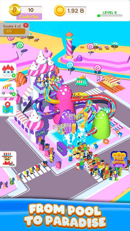 比特币水上乐园是一款极富创意和策略性的闲置模拟经营游戏,专为喜欢创造和管理独特水上乐园的玩家量身打造。在这里,你将从一个不起眼的小型滑梯开始,不断扩展并打造一个集娱乐性和商业价值为一体的庞大水上乐园帝国。通过合理规划乐园布局,引入各种令人兴奋的滑梯和设施,逐步吸引更多游客,使你的水上乐园焕发活力并达到前所未有的规模。