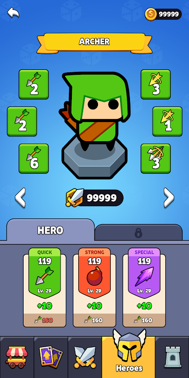 在骰影防线中,可自由组合和升级多位拥有独特技能的英雄。每个英雄具备不同的特长和战斗风格,他们的技能通过掷骰子触发,既有强力的单体攻击,也有覆盖范围广的群体防御。随着战斗的推进,玩家可以通过收集资源和经验强化英雄能力,解锁更强力的技能组合。如何选择升级方向,合理搭配英雄能力,是通往胜利的关键。