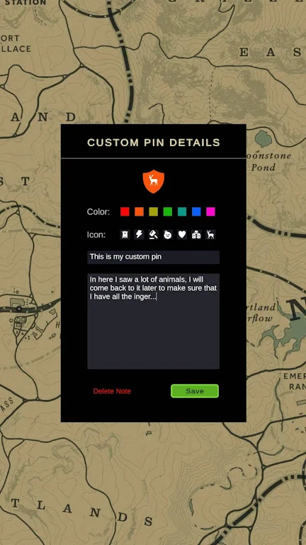 荒野大镖客2 地图与追踪器支持在地图上自定义图钉,玩家可以在任意地点添加个性化标记。每个图钉都允许设置详细的标题、注释、图标样式和颜色,方便区分不同类型的信息。无论是记下有价值的战利品刷新点,重要的狩猎区域,还是偶然发现的秘密洞穴,都能通过自定义图钉准确保存,避免遗忘,助你合理安排探险行程。