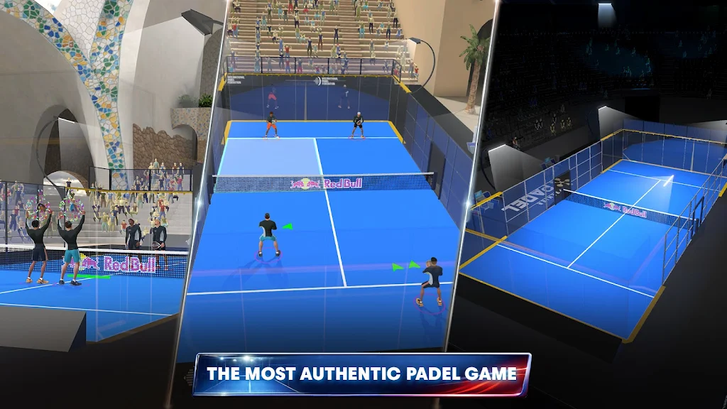 红牛板式网球:球场传奇采用了先进的物理引擎模拟,完美还原了球与球场墙壁的互动效果,带来难以置信的真实击球反馈。游戏中的所有场地均基于Premier Padel巡回赛的官方赛场打造,细节刻画极为精致,从球场的地面纹理到外围的观众席,每一个细节都体现出高度的专业水准。玩家可以在世界各地的著名帕德尔球场上挥洒汗水,感受职业级竞赛的紧张氛围。