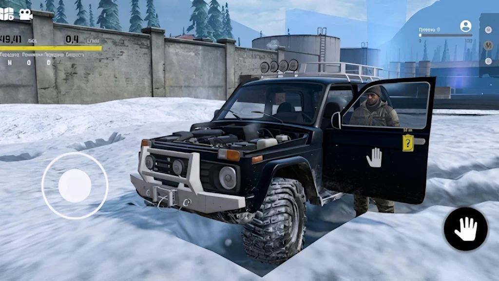 以第一人称视角深入驾驶舱,极地泥泞越野让玩家真实感受严寒条件下的操作体验。悬挂的颠簸、发动机的轰鸣、轮胎与地面的摩擦声清晰传入耳畔。车内环境细节丰富,不时可以看到仪表盘显示当前油量、车辆状态和限滑系统工作情况。游戏支持随时下车,玩家可以走出车外对车辆和周边地形进行详细观察,规划前进路线,甚至亲自操作绞盘设备助力脱困。外出的探索不仅有助于避开地形陷阱,还能有效延长续航时间。