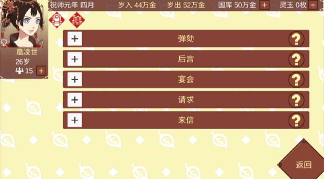 玩家在治国理政的过程中,不仅要考量经济民生,也需应对朝廷权谋、边疆防御等诸多考验。任命合适人才提升政效,举办科举选拔杰出人士,加强对外交流和军事建设,这些系统相互交织,形成复杂而合理的游戏机制。此外,宫廷内部的情感养成同样重要,通过合理经营人际关系,推动剧情发展,增强整体游戏体验的趣味性与深度。