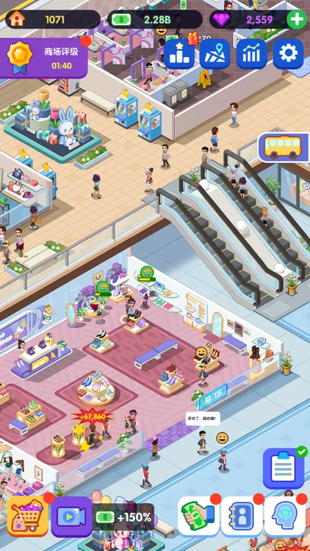 游戏注重资源的合理配置与持续发展。资金、人力、库存和营销预算需要精打细算,确保各项资源为最大效益运行。通过精准的数据分析和科学的资本运作,玩家能发现并抓住市场中的增长点。随着商场知名度和收益的提升,逐步解锁更多商业设施和高级店铺,实现商业版图的扩张。功夫不负有心人,坐拥庞大资金链和强大市场份额,最终打造属于你的时尚商业帝国。