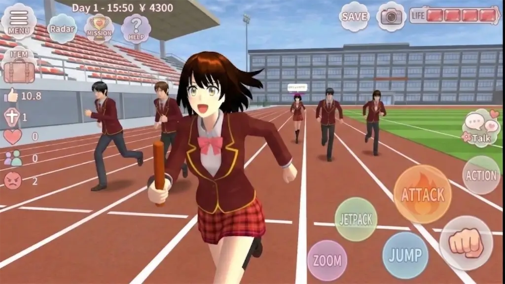 动漫风校园模拟器为玩家带来了极致的自由度。除了传统的校园日常,玩家还可以驾驶豪华跑车穿梭街头,体验不同的交通工具带来的速度感,或者背着喷气背包,飞跃校园上空,发现未曾注意的角落。游戏内的服装、发型和饰品种类丰富多样,支持玩家解锁并搭配专属于自己的造型,让虚拟形象更具个性与魅力。通过这些细节的打造,玩家能够在游戏中展现独特的校园时尚风采。
