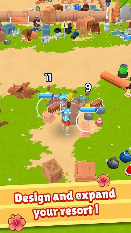 游戏开始时,你面对的是一座被遗弃且杂乱不堪的岛屿。玩家需要通过“破坏”和“清除”功能清理各种废弃物品和杂草,为重建打下基础。每一次清理都能获得珍贵资源,包括木材、石块等,成为你后续建设的必需材料。岛屿上的自然环境也会逐渐恢复生机,这不仅提升了岛屿的美观度,还吸引更多游客前来。
