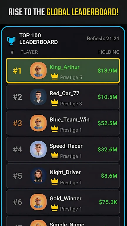 造车工厂大亨支持全球在线排行榜,玩家需要不断提升工厂经营水平,争夺行业霸主地位。与来自世界各地的竞争者一较高下,展示你作为汽车大亨的商业智慧和管理才能。排行榜不仅是荣誉的象征,也能激励玩家持续优化生产,推出更受欢迎的车型,成为全球市场的领先者。