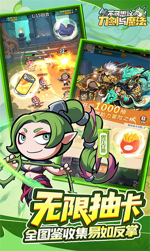《不可思议的刀剑与魔法》是一款竖屏策略卡牌手游。游戏主打“真·摸鱼神器”定位,采用竖屏单手操作和离线挂机收益机制,关闭游戏后英雄仍会自动战斗产出资源,上线一键领取,彻底告别肝帝式玩法。百位东西方神话与历史英雄跨时空集结,孙悟空、宙斯、关羽同台乱斗,搭配风、水、火、光、暗五大元素克制体系,策略至上而非单纯堆数值。