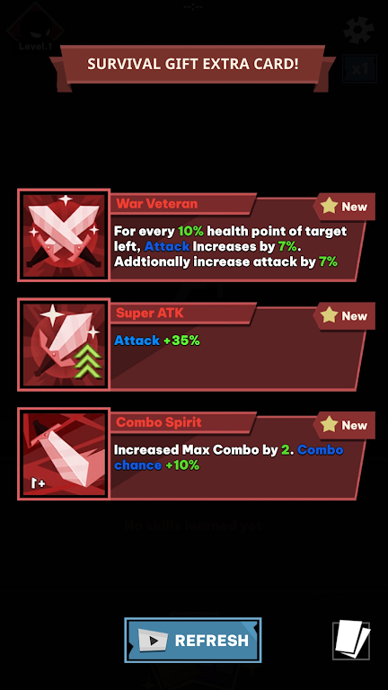 游戏内拥有丰富多样的随机技能和强化卡牌,玩家可以根据不同的策略需求灵活搭配。每经过一层地牢,都可以获得新的技能选项,技能之间相辅相成,支持多种连击组合。通过合理选择并升级武器、技能和卡牌,火柴人将变得更加强大和多样化。强大的技能释放和炫酷的连击效果,让游戏过程充满视觉冲击力,提升玩家手感。
