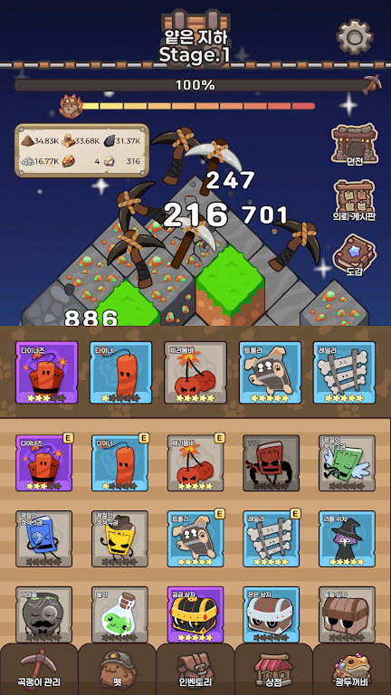 传统放置游戏中,资源奖励通常单一且枯燥,而无限镐采取了更为创新的资源管理方式。你采集的不同类型矿石都将作为强化的基础材料,而非单一的金币。这意味着你需要根据自己的战略选择采集和使用对应的资源,真正体验资源之间的权衡与选择乐趣。这种直观的资源管理机制丰富了游戏的策略层面,也使玩家更有掌控感,提升游戏的耐玩性和趣味性。