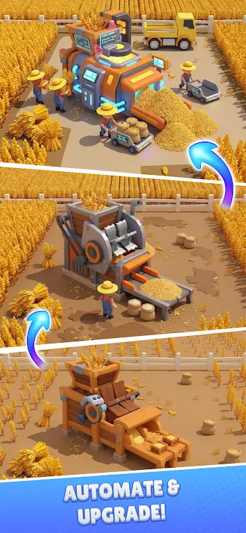 田园帝国:丰收物语是一款卡通风格的闲置农场模拟游戏,玩家将从一片金黄色的小麦田开始,逐步发展成集收割、加工、烘焙和销售为一体的农业产业链。在这里,你不仅是一名农场主,更是农业机械和物流管理的高手。通过合理规划和升级设备,实现生产自动化,将你的农场经营推向巅峰。