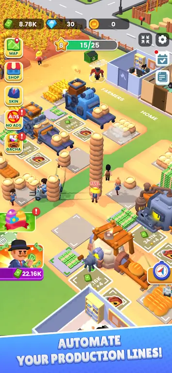 田园帝国:丰收物语特别适合喜欢轻松游戏体验的玩家。即便离线状态,农场机械和工人依然持续工作,为你带来源源不断的收益。无需频繁点击操作,就能体验到不断积累财富的乐趣。每天上线即可领取丰厚的闲置奖励,逐步扩展你的农场规模和机器产能,享受成为农业大亨的满足感。