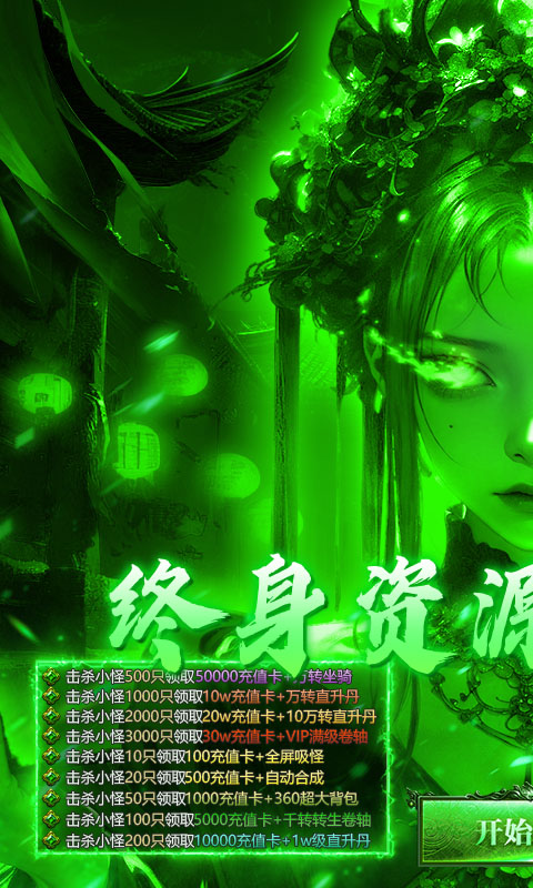 2.终身资源:每天登录游戏领取游戏资源,终身有效