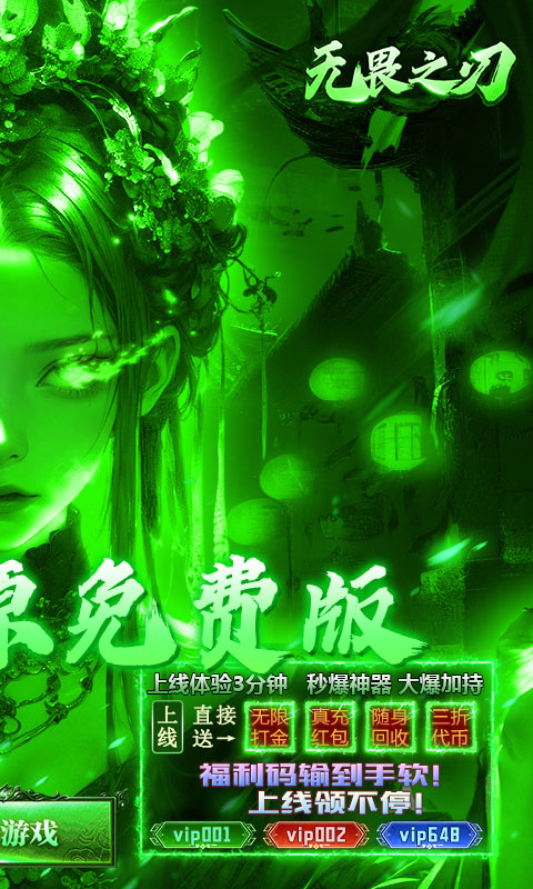 无畏之刃(终身资源免费版)是一款火龙攻速神器免费版传奇,游戏永久内置3折福利,每天免费领取648代币和大量养成资源。三职业刀刀绿毒打怪效率拉满,三职业可自由转换,多种新颖玩法PK、鏖战沙巴克、跨服系统奖励丰厚。游戏开局还送豪华首充大礼包、黄金、钻石、至尊3大会员,海量红包终生赠送,真正为零氪玩家所打造,请上服耐心体验,保证您不虚此行!