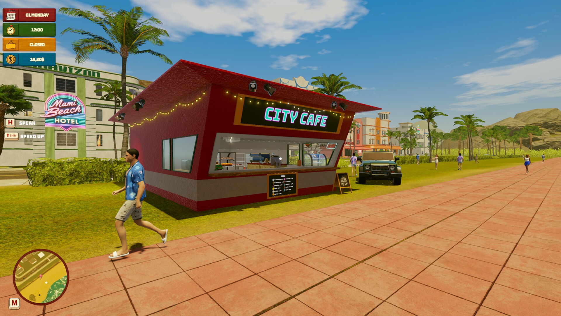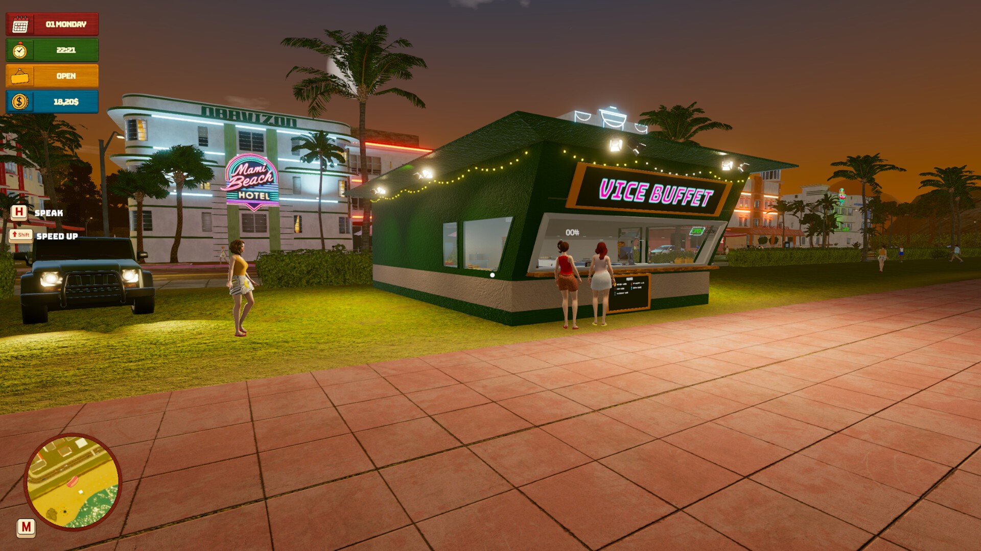 在夏日街头经营热狗 / 冰淇淋餐车,快速制作美食、服务顾客、升级餐车,,从小摊成长为城市人气美食据点。