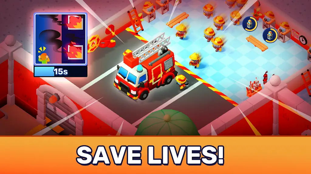 在《闲置火灾救援》中,你将化身为一名消防队长,负责指挥消防队伍,守护城市的每一个角落。游戏结合了放置与策略管理元素,让你体验从小型地方消防站起步,逐步扩展到全国乃至全球的庞大救援网络。通过合理分配资源和升级设施,你可以提升响应效率,带领消防员们完成各种紧急任务,成为真正的消防大亨。