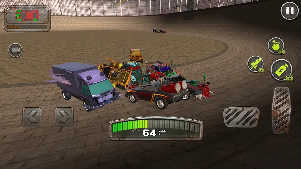 碰撞竞技场操作易上手,玩家通过简单的方向和加速控制即可轻松驾驭车辆。但胜利绝非偶然,合理运用撞击角度、刹车与加速策略,避开对手反击才是致胜法宝。游戏的驾驶系统注重物理真实性,碰撞后车辆的受力反应与损伤反馈都极具震撼力。熟悉每辆车的特性和地形优势,结合灵活操作,才能在竞技场中立于不败之地。