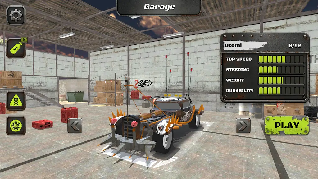 游戏中设计了多种极具挑战性的竞技场场地,从狭窄的城市废墟到宽阔的工业废场,每个场景都考验着玩家的驾驶技巧和战略布局。不同的场地环境影响车辆的操控和碰撞效果,玩家需根据赛场地形灵活调整策略,寻找有利位置对对手发起致命撞击。场地内设有各种障碍物和陷阱,为比赛增添了更多变化与趣味,让每一场比赛都充满未知和挑战。