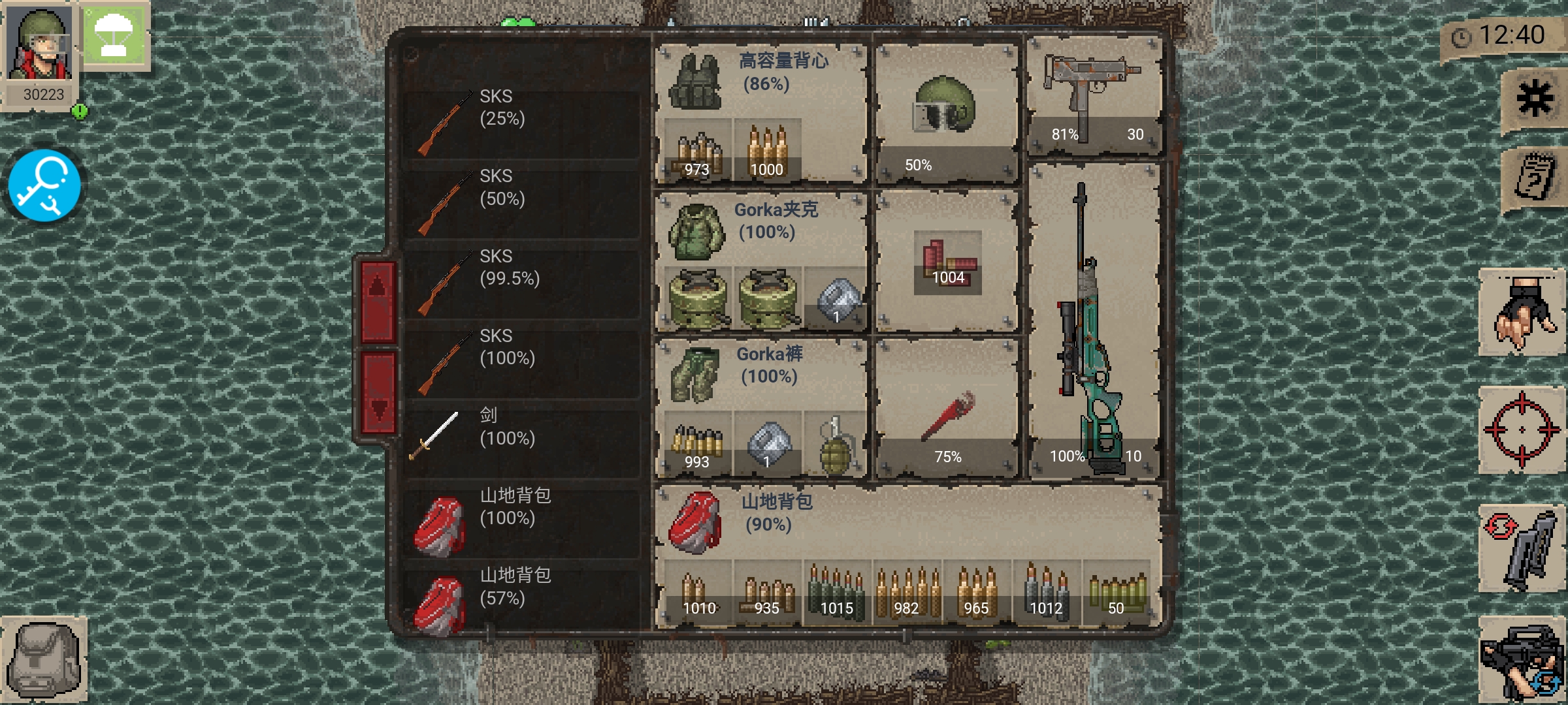 有大量枪械,各种物资,帐篷等,老样子不喜欢移速技能就没点,等级已够,周围修了栅栏可开心塔防【八门神器专属存档】