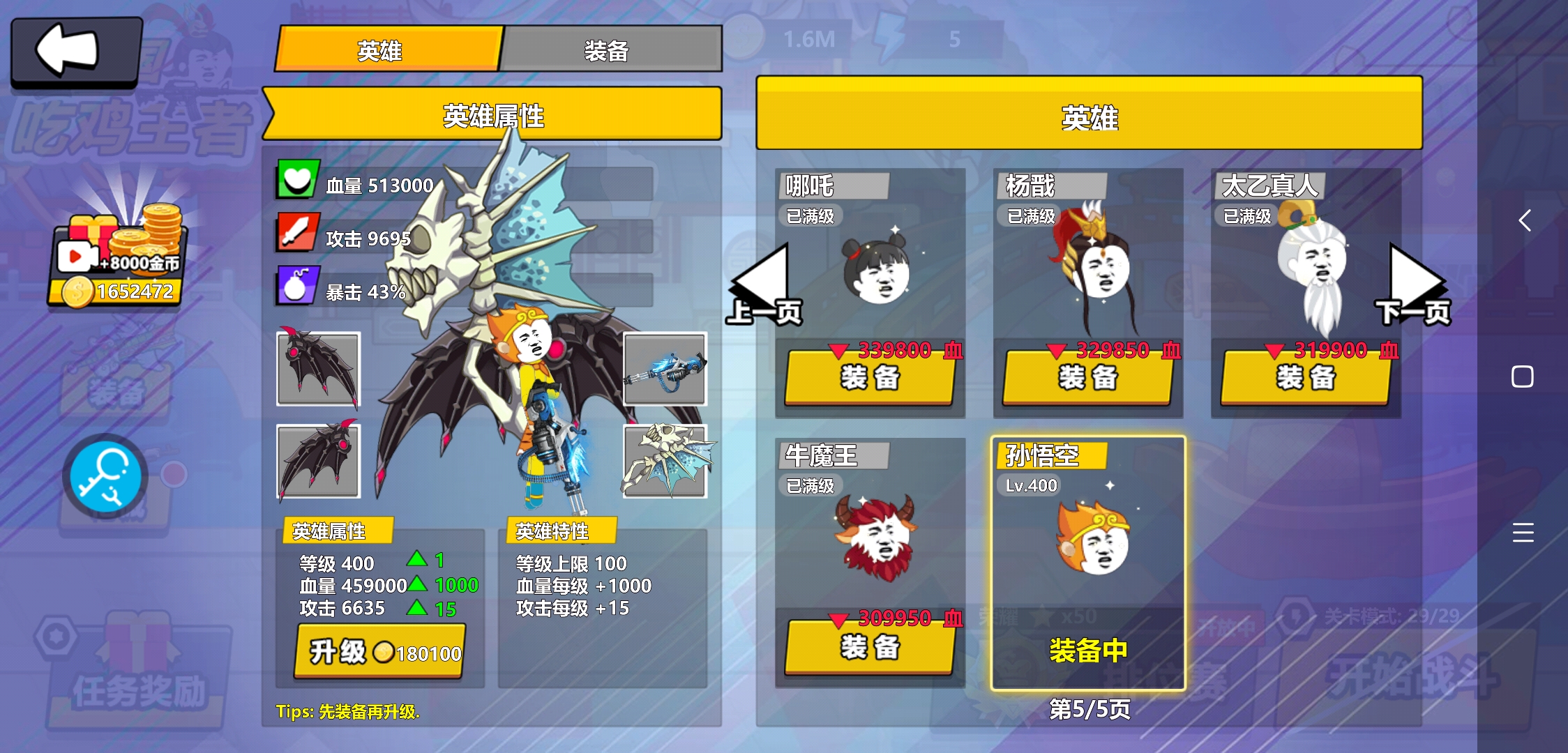 荣耀五十星,400级孙悟空【八门神器专属存档】