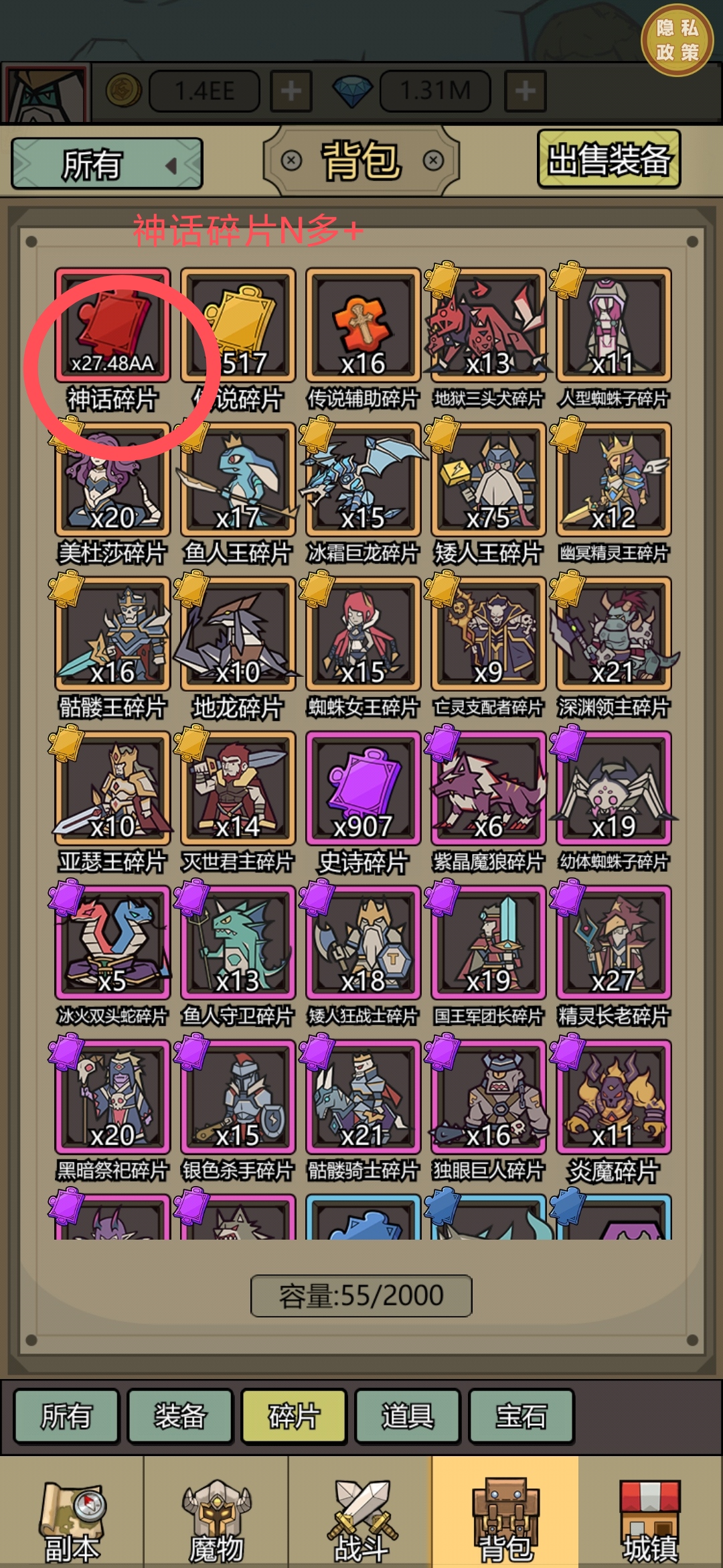 神话英雄(成长变态加强)=强秒 资源无限 神话碎片AA+ 经验+金币 AA+【八门神器专属存档】