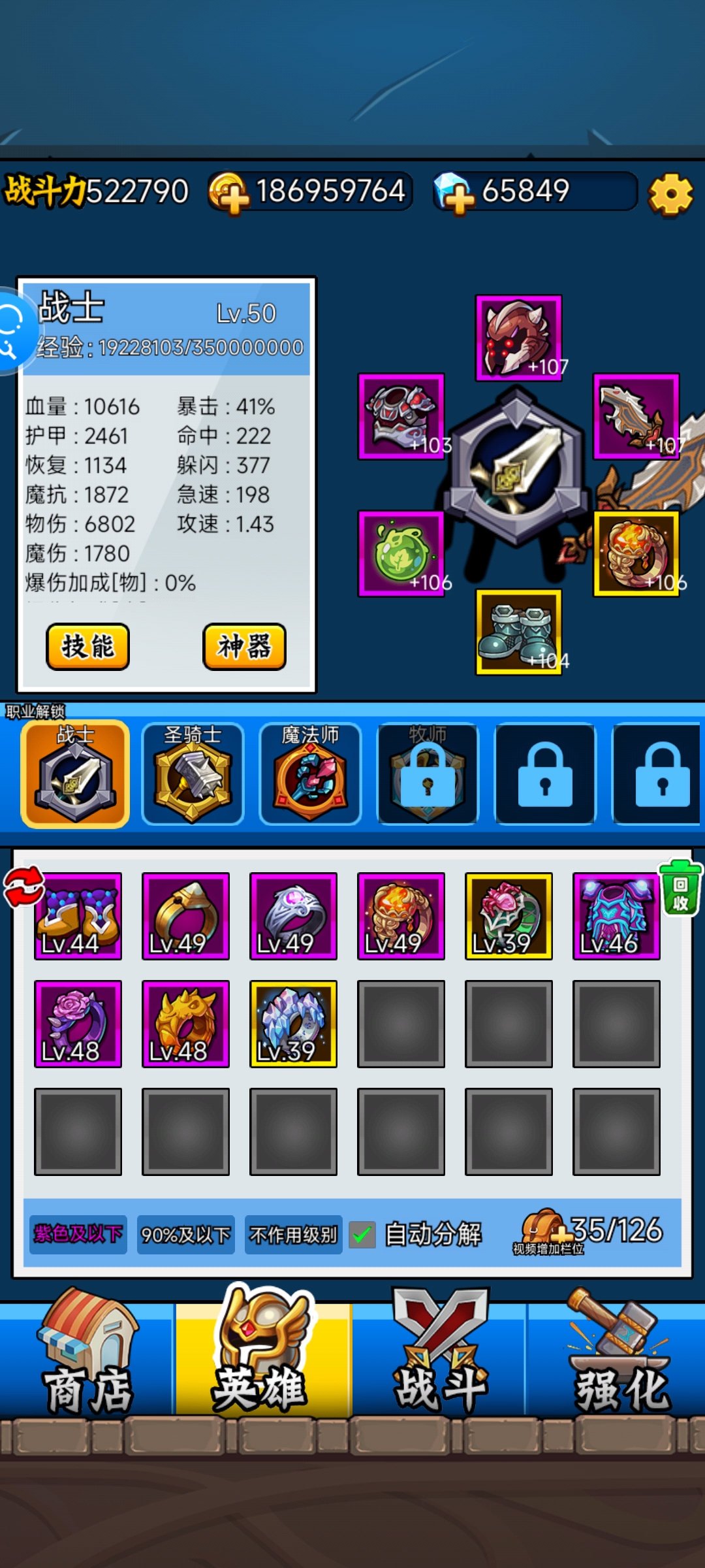 角色50级战力50万。这就不是给人玩的。【八门神器专属存档】