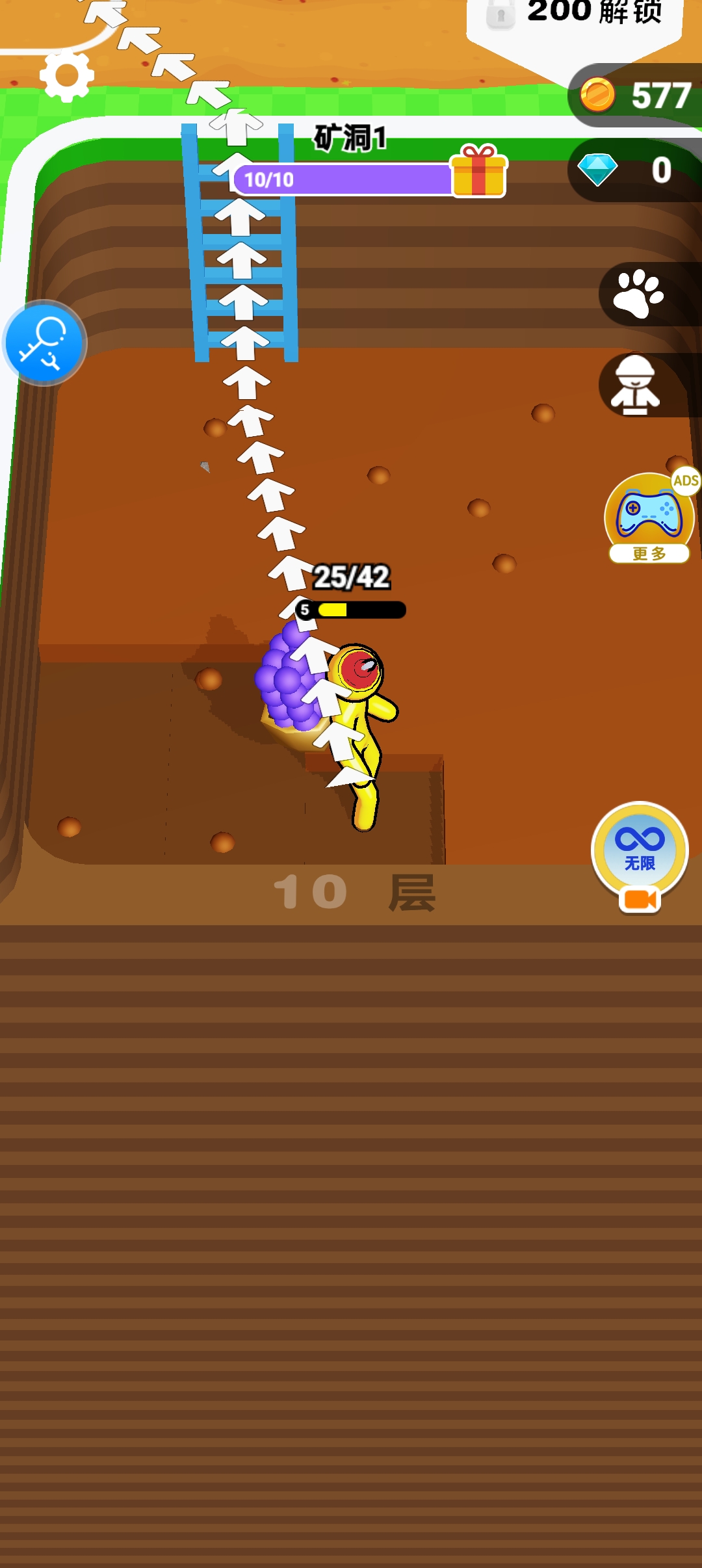 矿洞挖到第十层