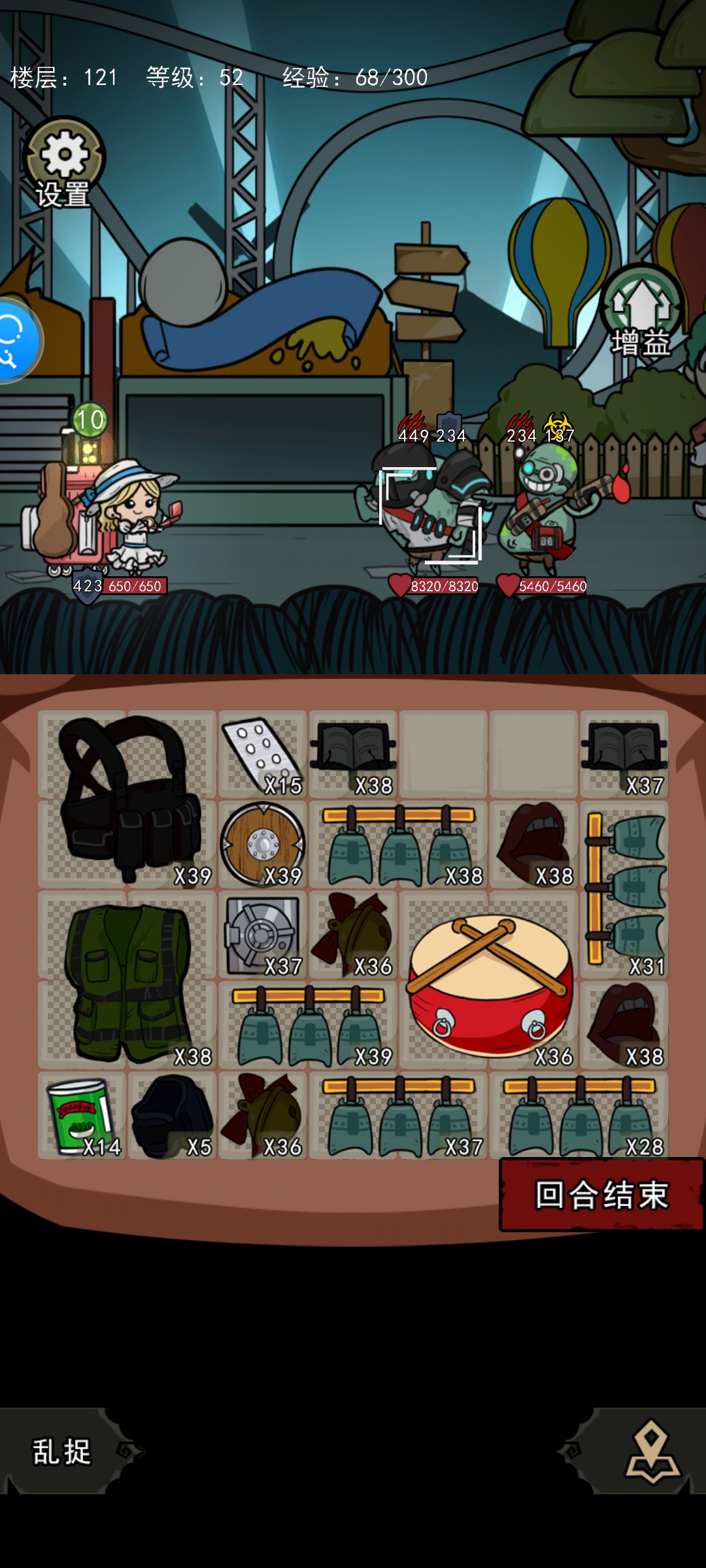 爬塔121层 打击乐 每回合好感度3W 武器叠38层【八门神器专属存档】