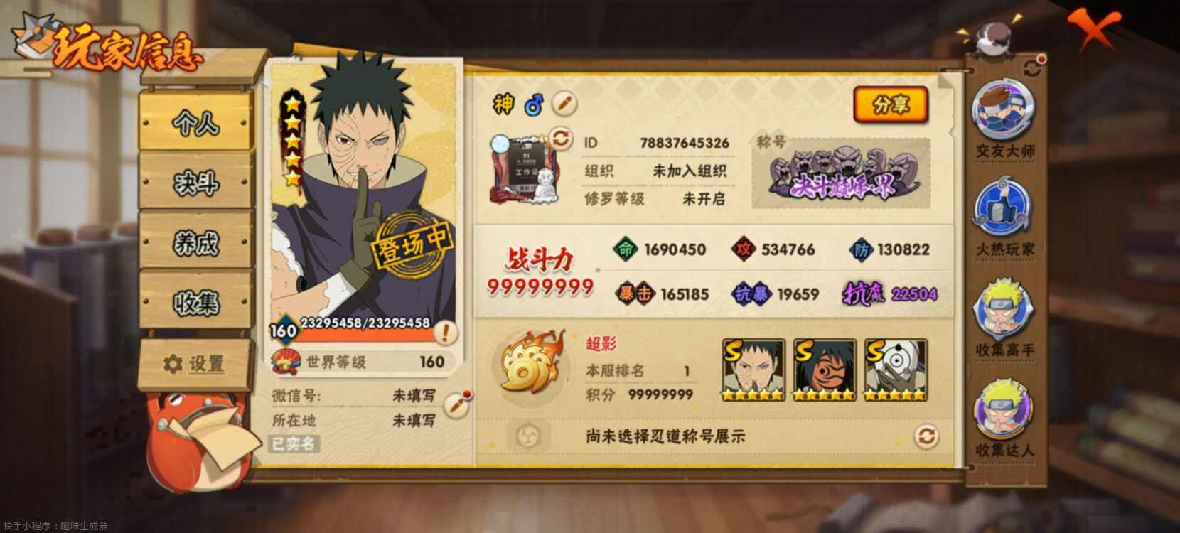 新增疾风樱、五条悟、大筒木舍人